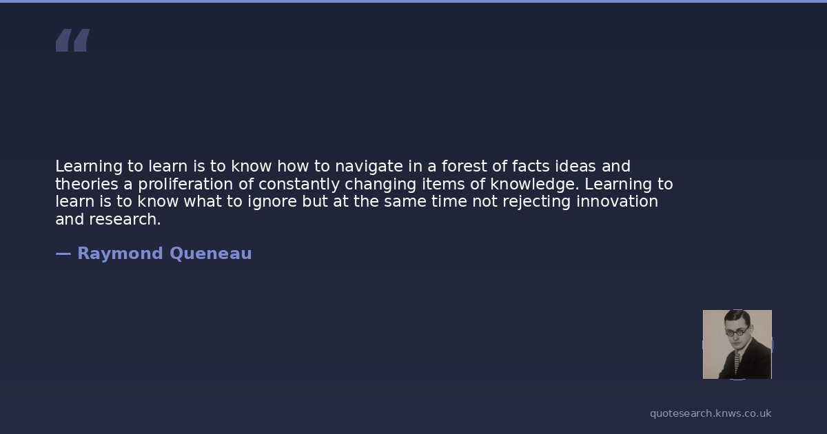 Learning to learn is to know how to navigate in a forest of facts ideas and theories a proliferation of constantly changing items of knowledge. Learning to learn is to know what to ignore but at the same time not rejecting innovation and research.