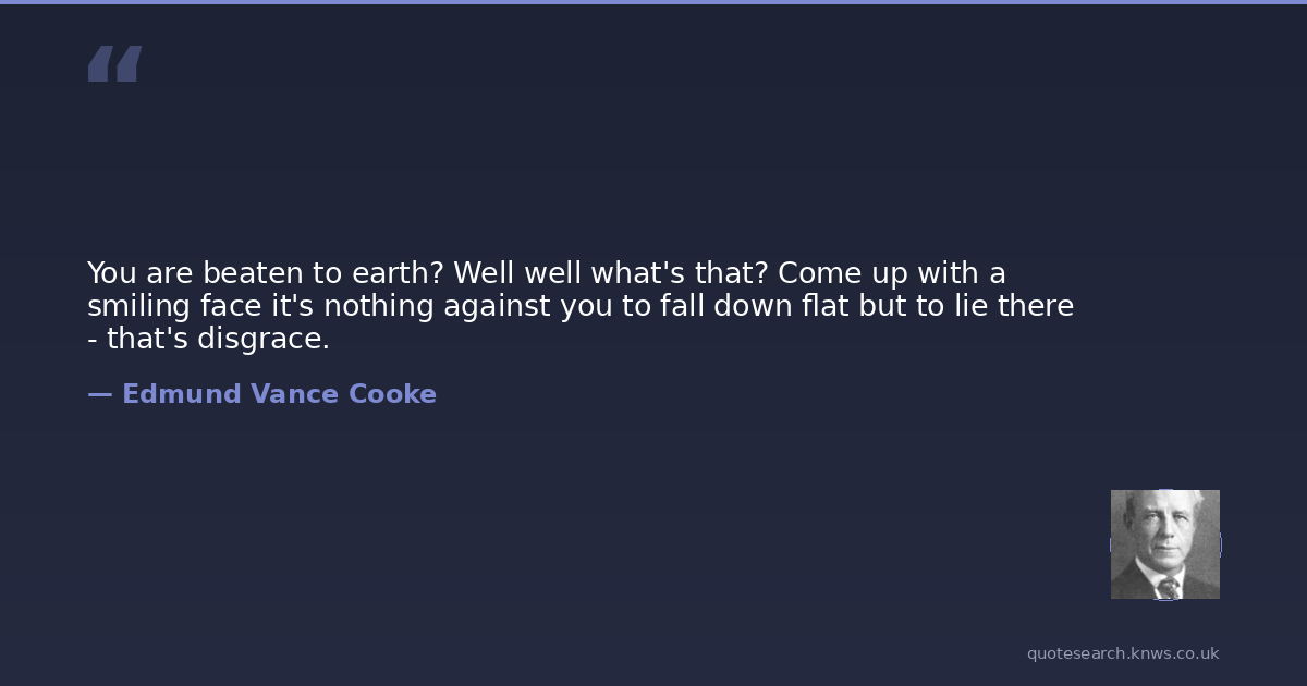 You are beaten to earth? Well well what's that? Come up with a smiling face it's nothing against you to fall down flat but to lie there - that's disgrace.