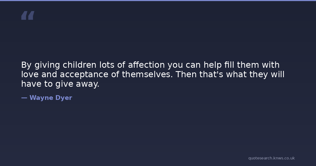 By giving children lots of affection you can help fill them with love and acceptance of themselves. Then that's what they will have to give away.