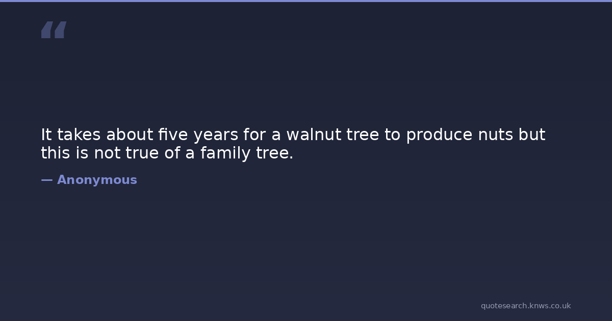 It takes about five years for a walnut tree to produce nuts but this is not true of a family tree.