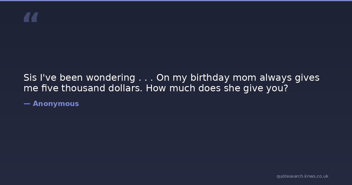 Sis I've been wondering . . . On my birthday mom always gives me five thousand dollars. How much does she give you?
