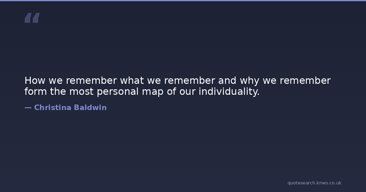 How we remember what we remember and why we remember form the most personal map of our individuality.
