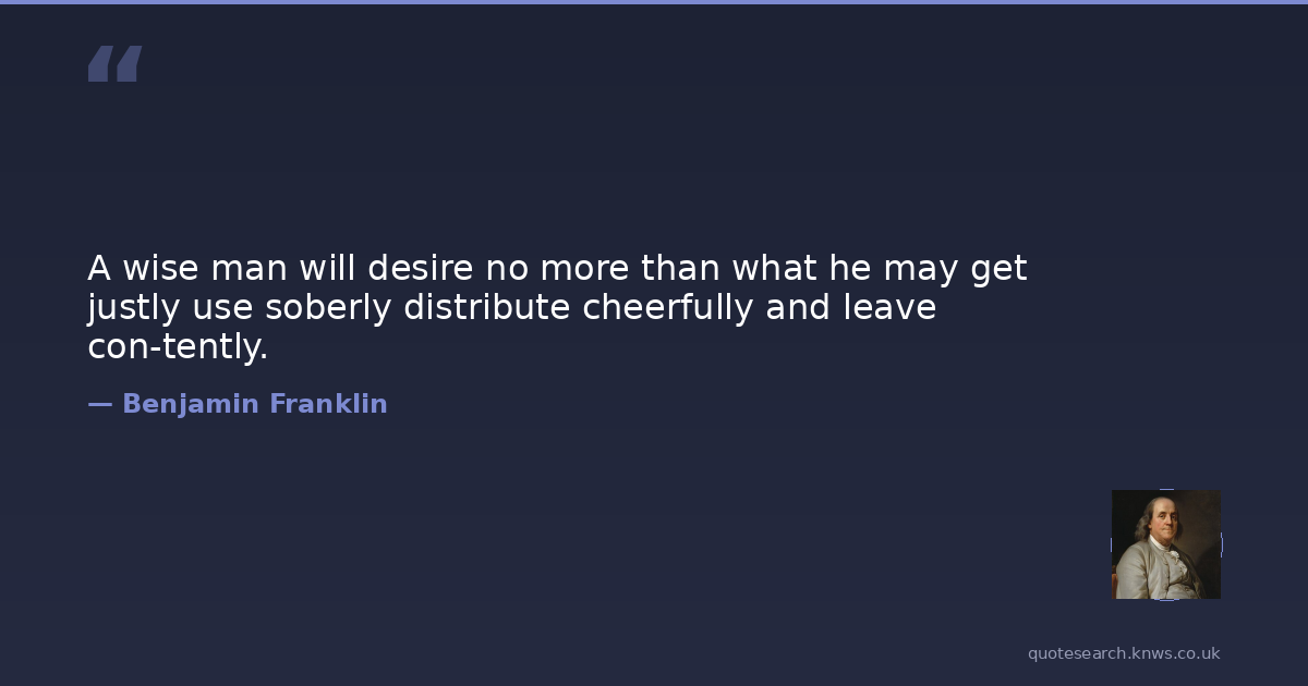 A wise man will desire no more than what he may get justly use soberly distribute cheerfully and leave con-tently.