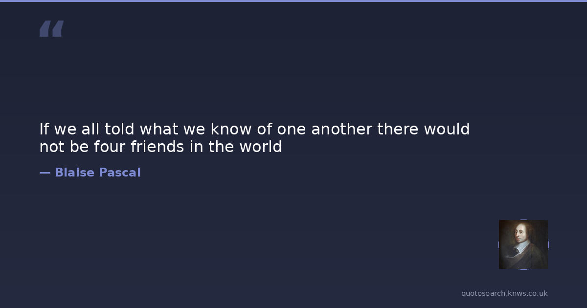 If we all told what we know of one another there would not be four friends in the world