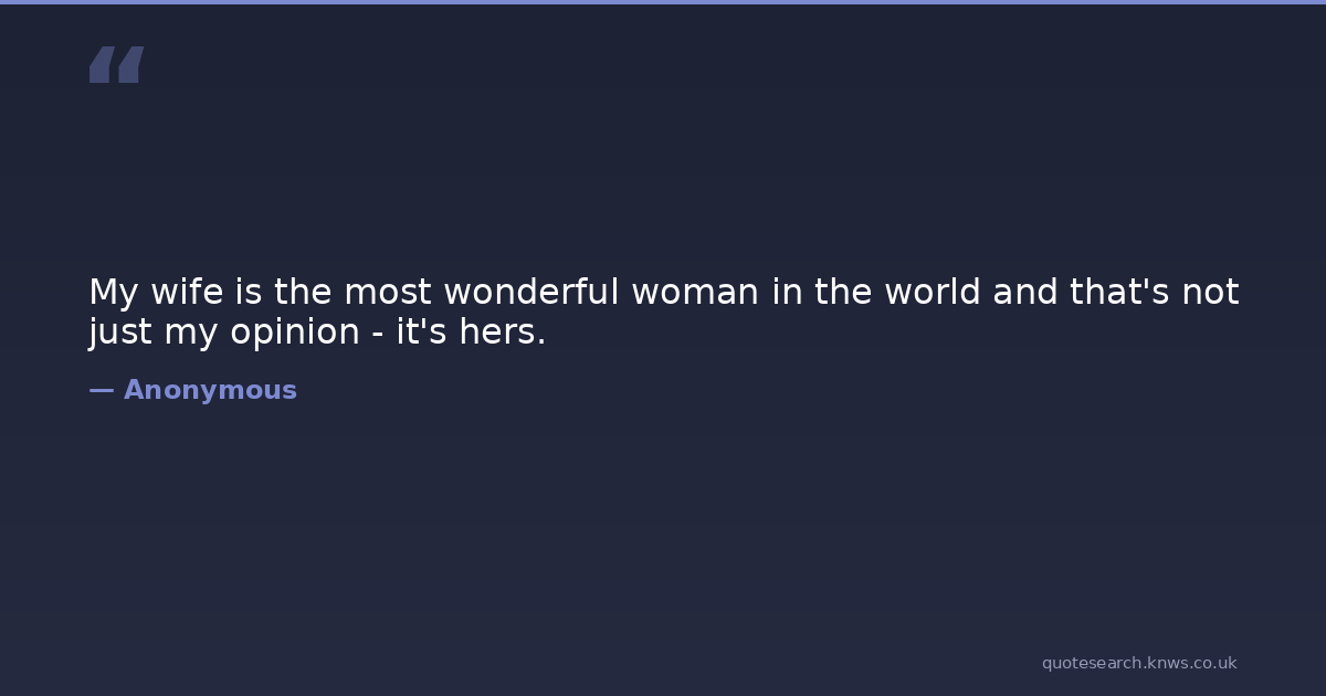 My wife is the most wonderful woman in the world and that's not just my opinion - it's hers. funny Download Image Share on X Share on Facebook Copy Link