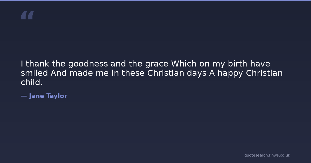 I thank the goodness and the grace Which on my birth have smiled And made me in these Christian days A happy Christian child.