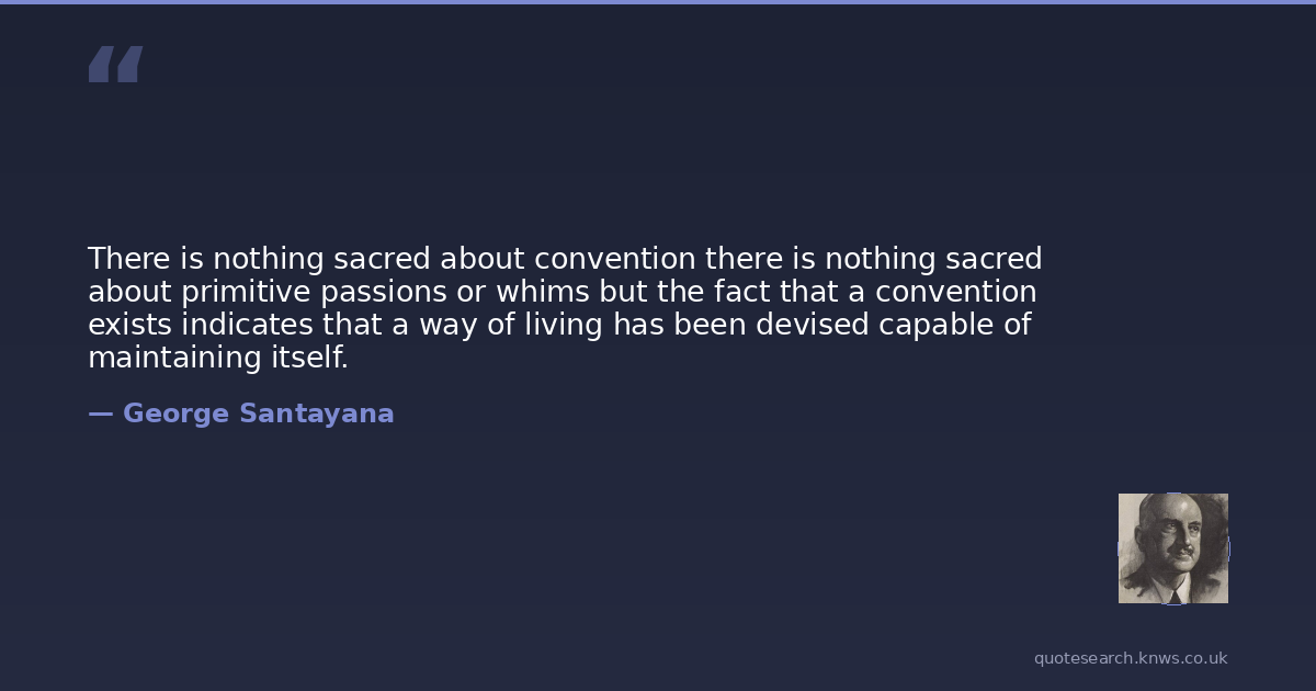 There is nothing sacred about convention there is nothing sacred about primitive passions or whims but the fact that a convention exists indicates that a way of living has been devised capable of maintaining itself.
