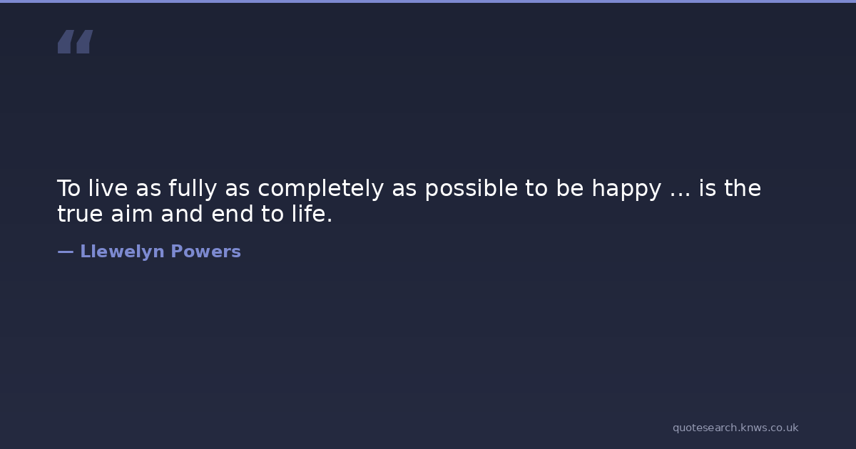 To live as fully as completely as possible to be happy ... is the true aim and end to life.