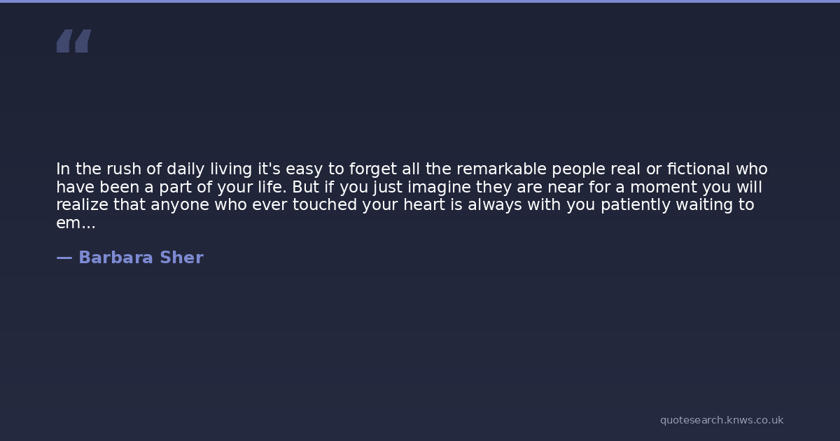 In the rush of daily living it's easy to forget all the remarkable people real or fictional who have been a part of your life. But if you just imagine they are near for a moment you will realize that anyone who ever touched your heart is always with you patiently waiting to emanate warmth and support whenever you remember to think of them.