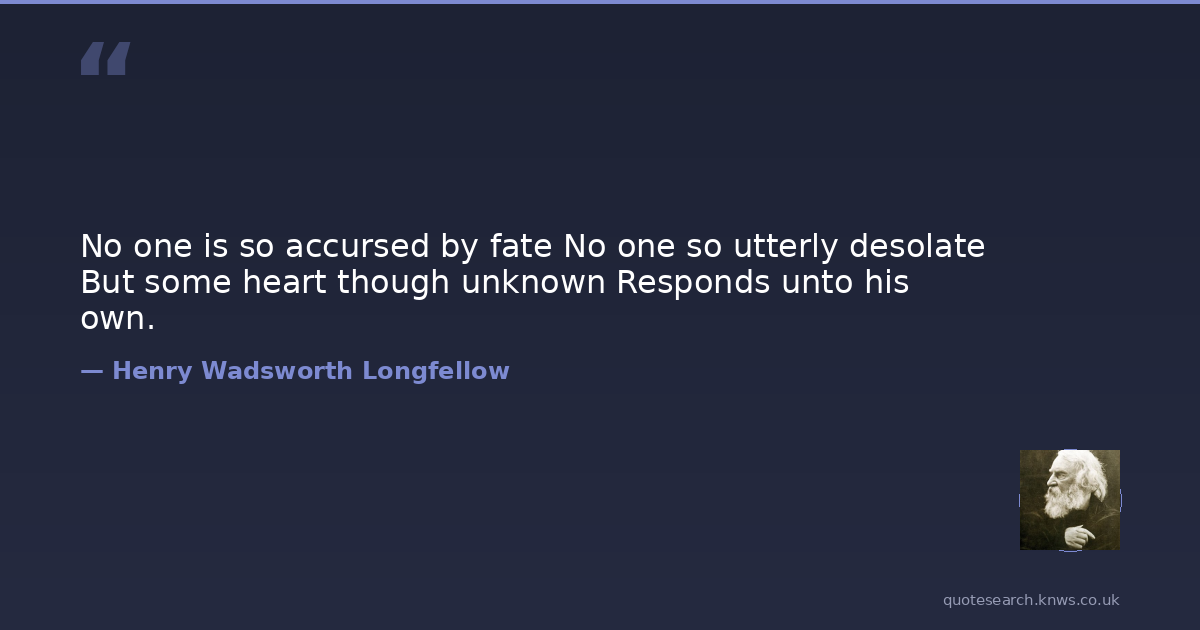 No one is so accursed by fate No one so utterly desolate But some heart though unknown Responds unto his own.