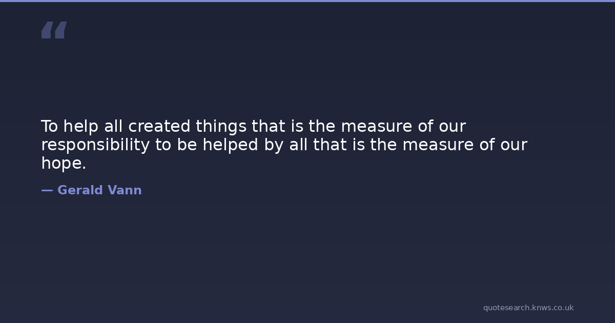 To help all created things that is the measure of our responsibility to be helped by all that is the measure of our hope. helping people Download Image Share on X Share on Facebook Copy Link