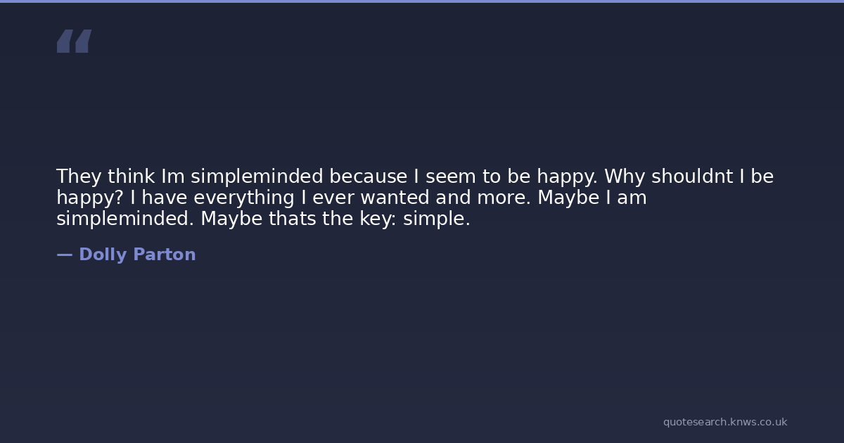 They think Im simpleminded because I seem to be happy. Why shouldnt I be happy? I have everything I ever wanted and more. Maybe I am simpleminded. Maybe thats the key: simple.