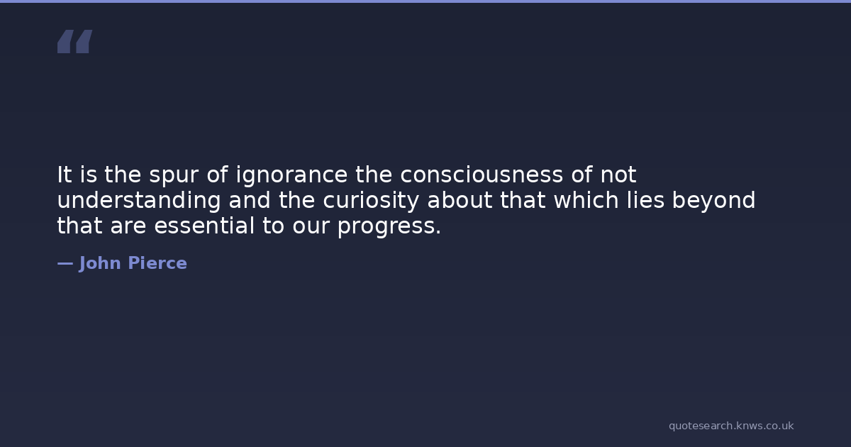 It is the spur of ignorance the consciousness of not understanding and the curiosity about that which lies beyond that are essential to our progress.