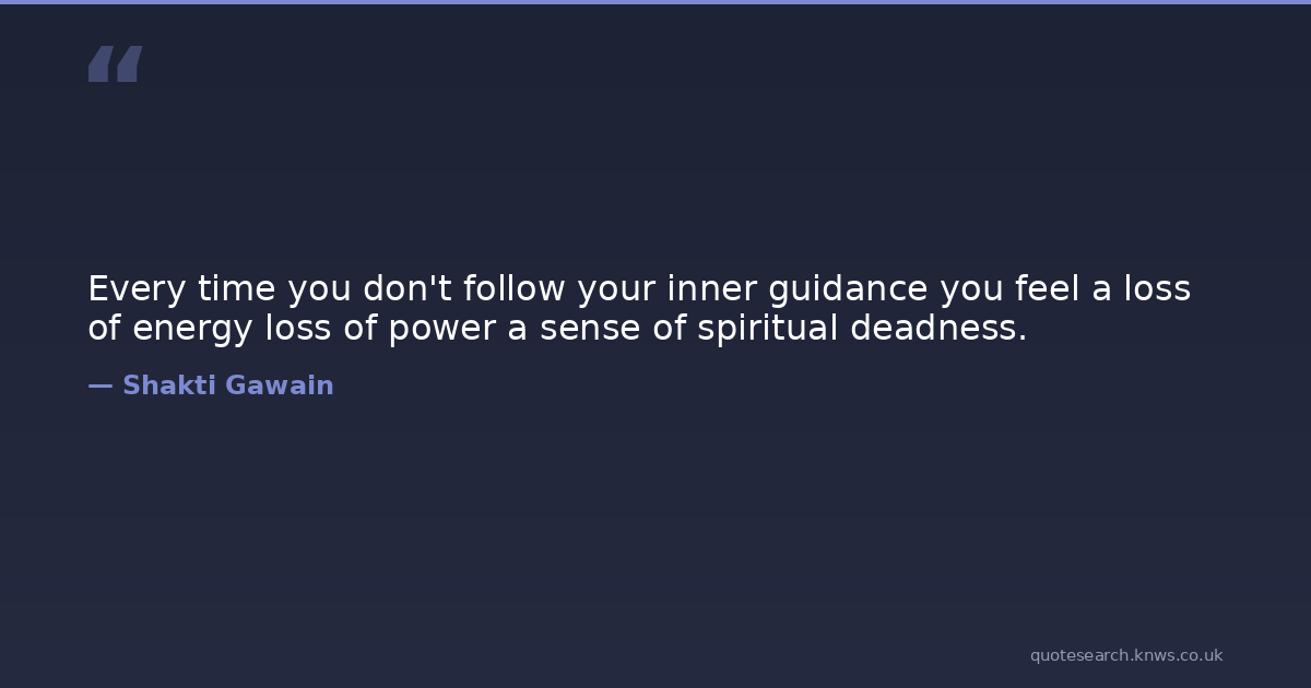 Every time you don't follow your inner guidance you feel a loss of energy loss of power a sense of spiritual deadness.