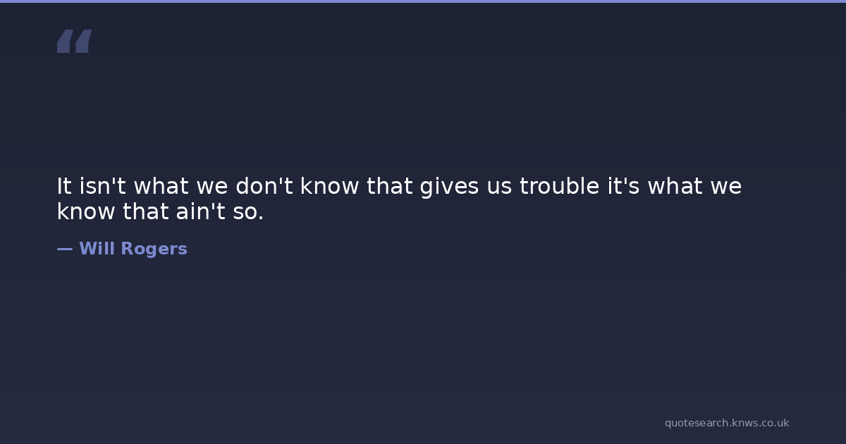 It isn't what we don't know that gives us trouble it's what we know that ain't so.