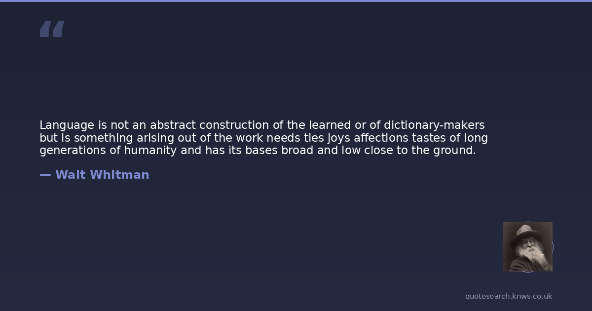 Language is not an abstract construction of the learned or of dictionary-makers but is something arising out of the work needs ties joys affections tastes of long generations of humanity and has its bases broad and low close to the ground.