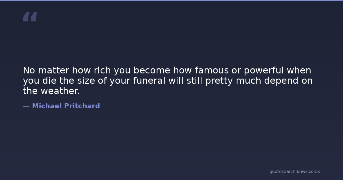 No matter how rich you become how famous or powerful when you die the size of your funeral will still pretty much depend on the weather.