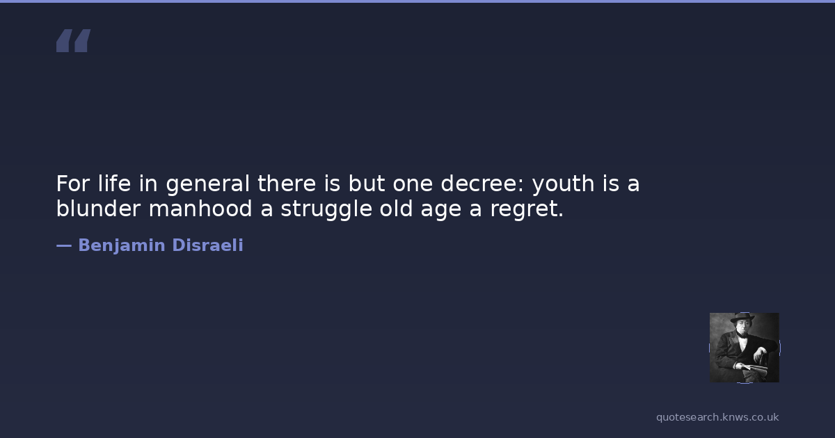 For life in general there is but one decree: youth is a blunder manhood a struggle old age a regret.