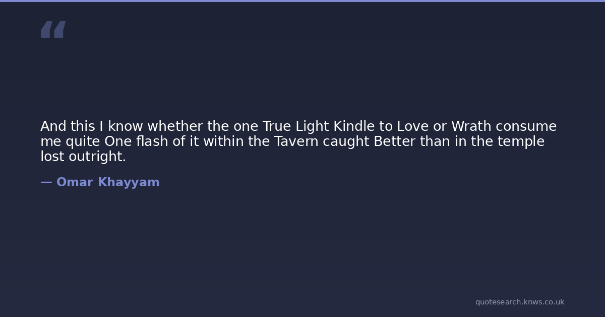 And this I know whether the one True Light Kindle to Love or Wrath consume me quite One flash of it within the Tavern caught Better than in the temple lost outright.
