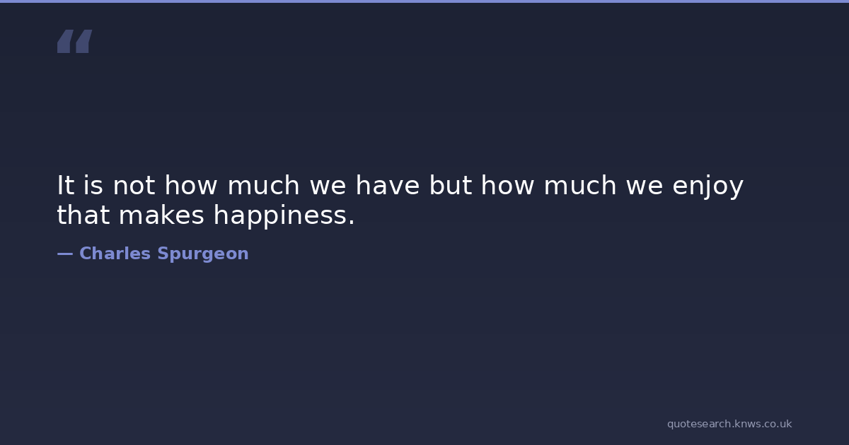It is not how much we have but how much we enjoy that makes happiness.