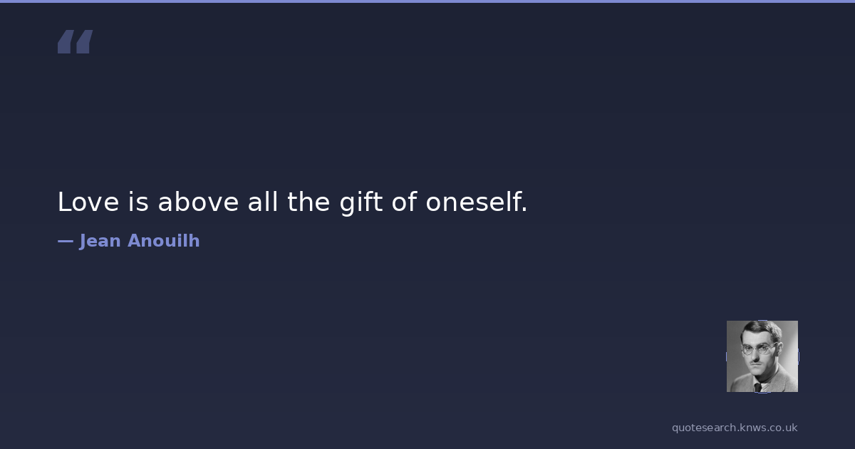 Jean Anouilh was a 20th-century French playwright. Jean Marie Lucien Pierre Anouilh was a French dramatist and screenwriter whose career spanned five decades. Though his work ranged from high drama to absurdist farce, Anouilh is best known for his 1944 production of Sophocles' Antigone, which, though performed without objection by censors, was nevertheless seen as an attack on Marshal Pétain's Vichy government. Read more on Wikipedia →