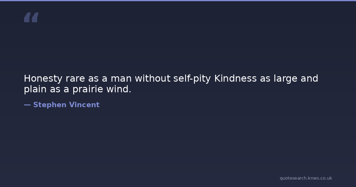 Honesty rare as a man without self-pity Kindness as large and plain as a prairie wind. lincoln Download Image Share on X Share on Facebook Copy Link