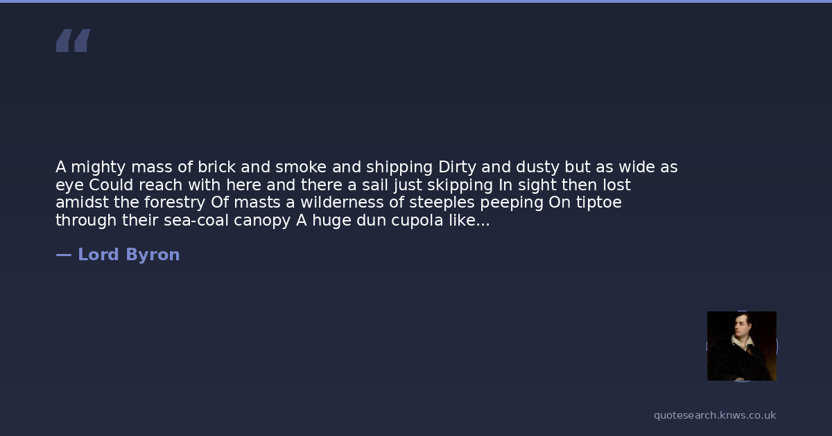 A mighty mass of brick and smoke and shipping Dirty and dusty but as wide as eye Could reach with here and there a sail just skipping In sight then lost amidst the forestry Of masts a wilderness of steeples peeping On tiptoe through their sea-coal canopy A huge dun cupola like a fools-cap crown On a fool's head - and there is London Town.