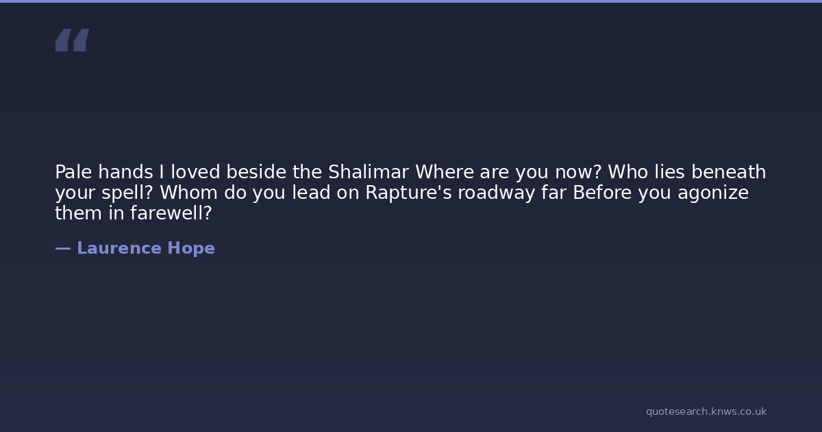 Pale hands I loved beside the Shalimar Where are you now? Who lies beneath your spell? Whom do you lead on Rapture's roadway far Before you agonize them in farewell?