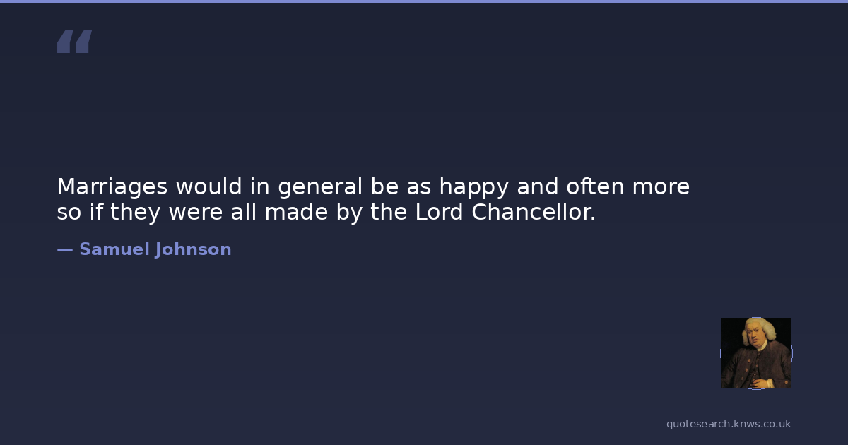 Marriages would in general be as happy and often more so if they were all made by the Lord Chancellor.