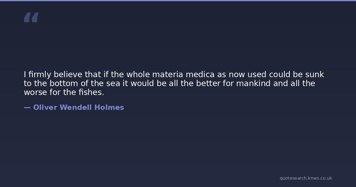 I firmly believe that if the whole materia medica as now used could be sunk to the bottom of the sea it would be all the better for mankind and all the worse for the fishes.
