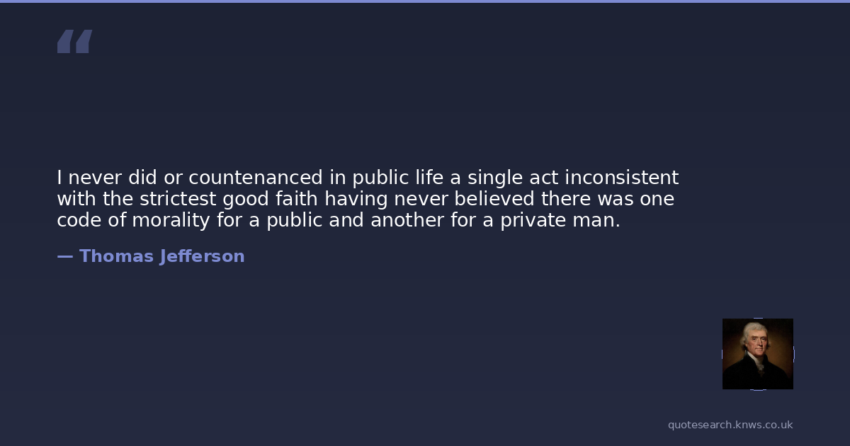 I never did or countenanced in public life a single act inconsistent with the strictest good faith having never believed there was one code of morality for a public and another for a private man.