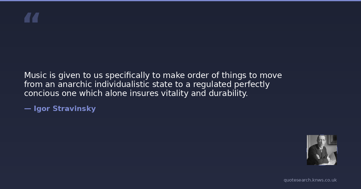 Music is given to us specifically to make order of things to move from an anarchic individualistic state to a regulated perfectly concious one which alone insures vitality and durability.