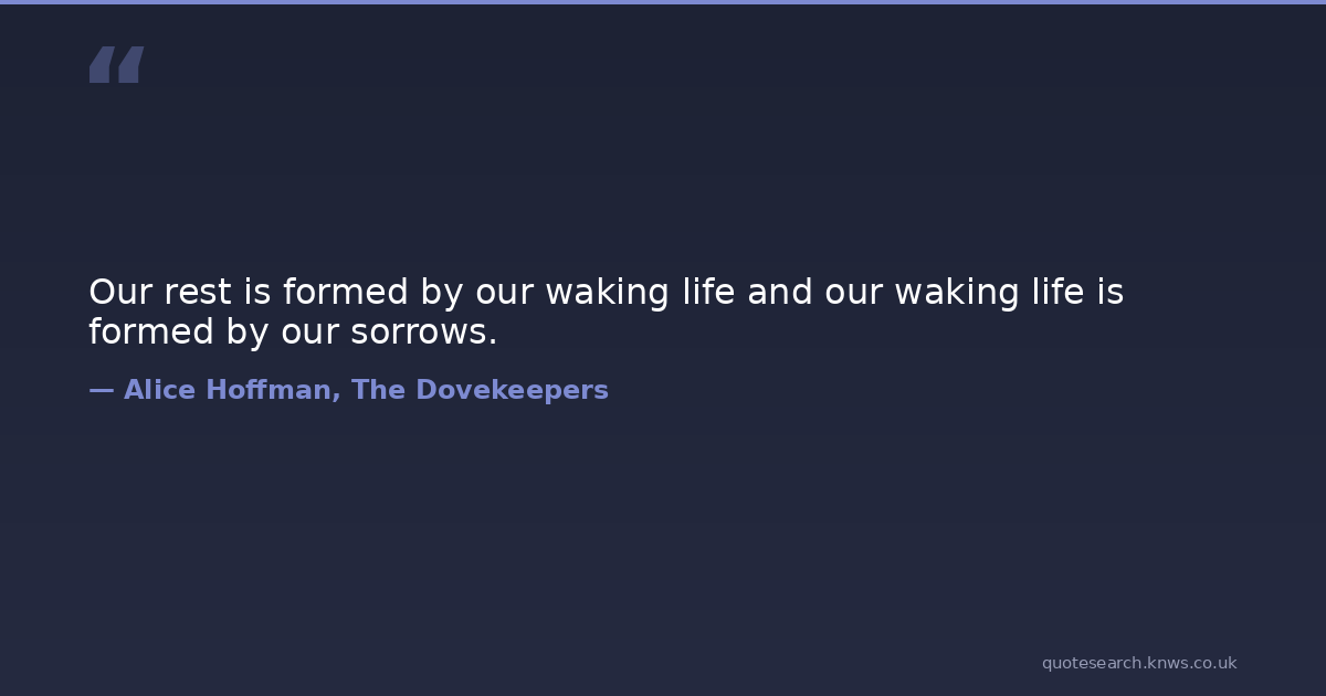 Our rest is formed by our waking life and our waking life is formed by our sorrows.