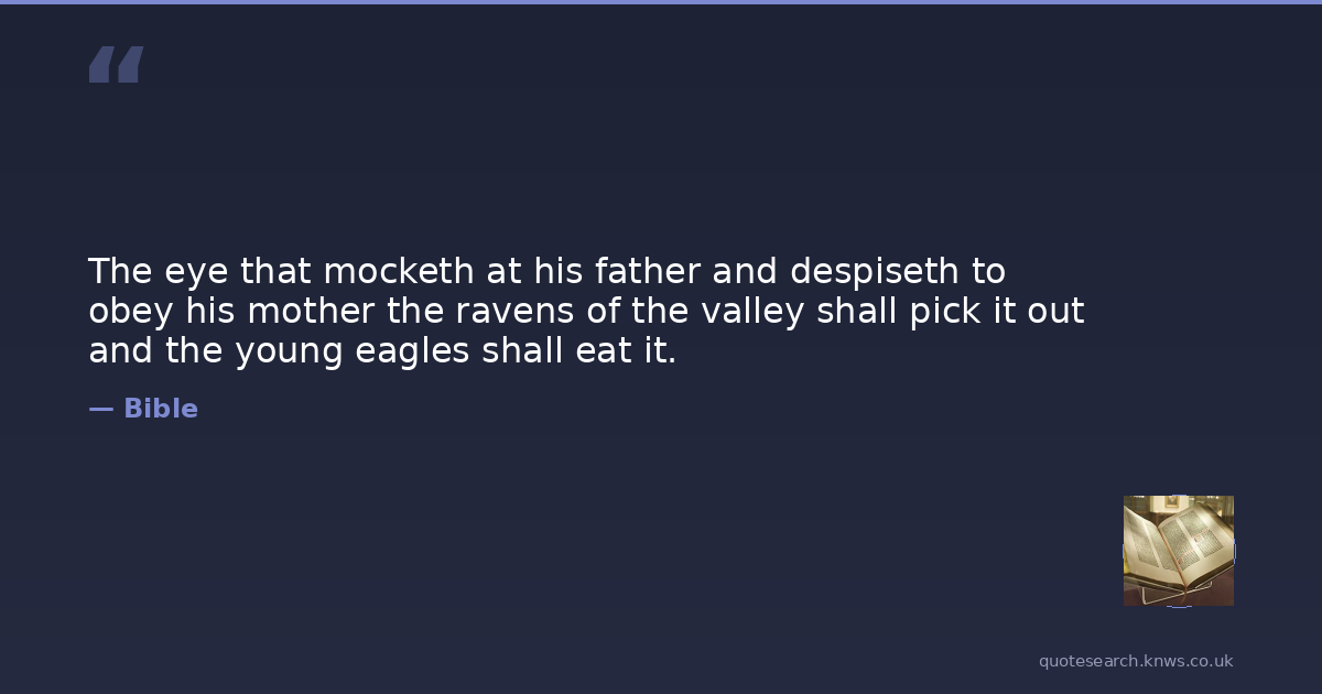 The eye that mocketh at his father and despiseth to obey his mother the ravens of the valley shall pick it out and the young eagles shall eat it.