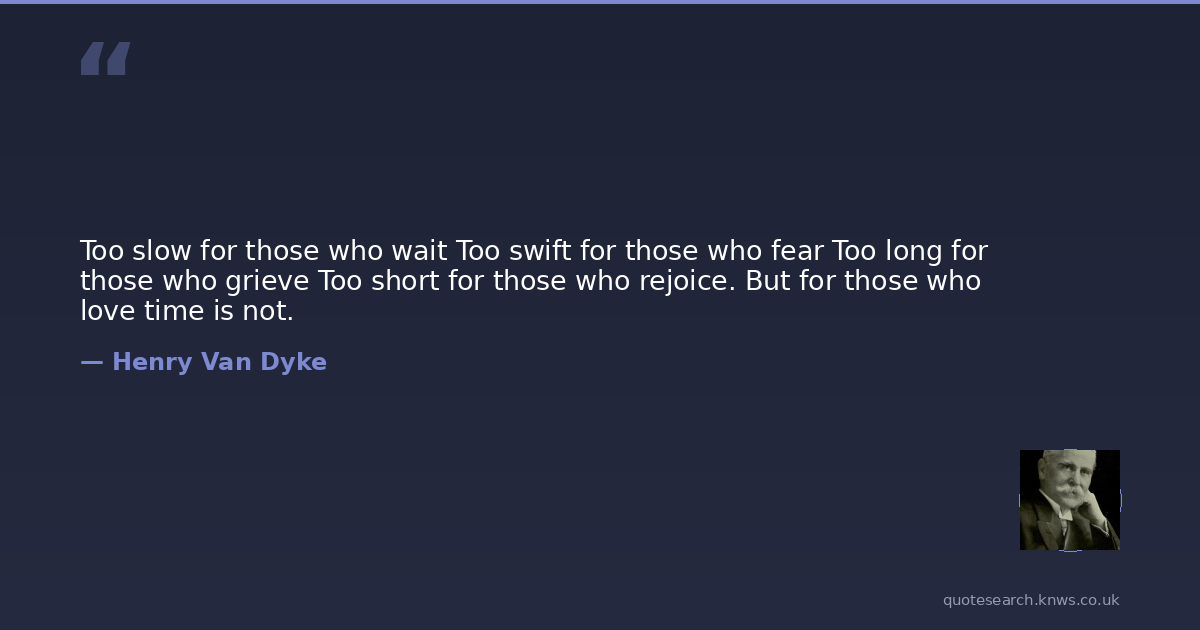 Too slow for those who wait Too swift for those who fear Too long for those who grieve Too short for those who rejoice. But for those who love time is not.
