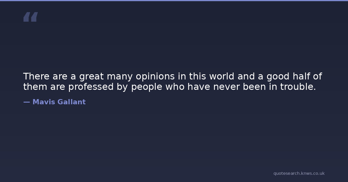 There are a great many opinions in this world and a good half of them are professed by people who have never been in trouble.
