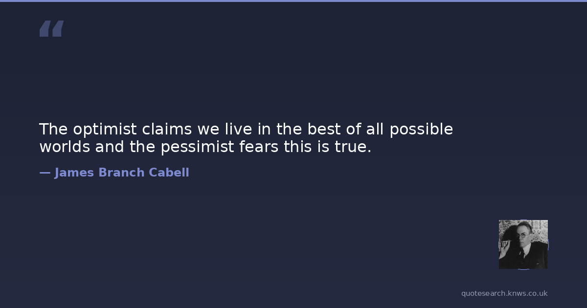 The optimist claims we live in the best of all possible worlds and the pessimist fears this is true.