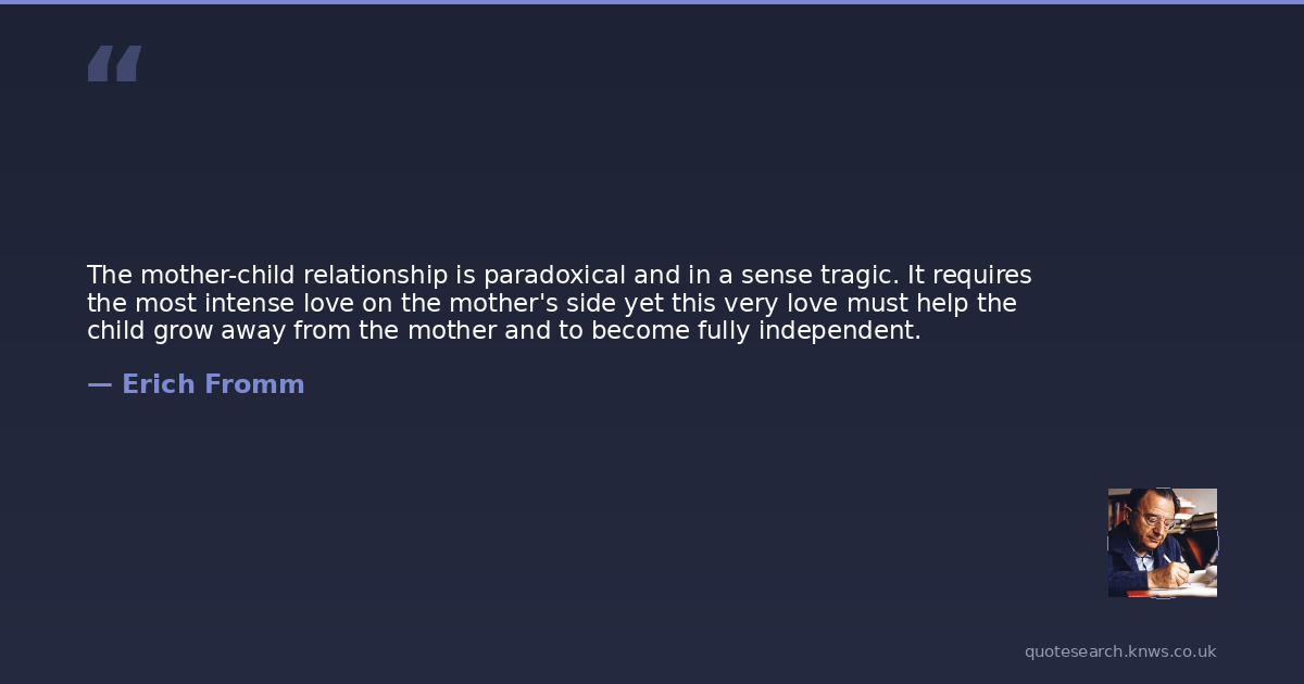 The mother-child relationship is paradoxical and in a sense tragic. It requires the most intense love on the mother's side yet this very love must help the child grow away from the mother and to become fully independent.
