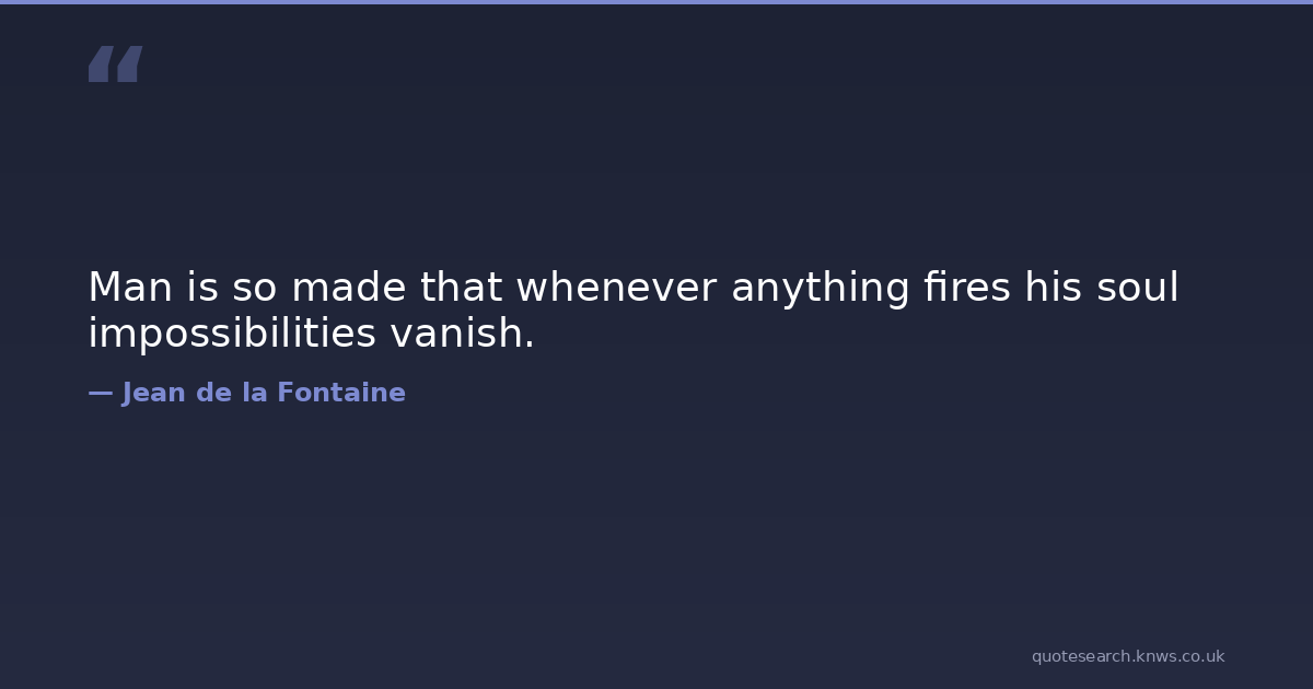 Man is so made that whenever anything fires his soul impossibilities vanish.