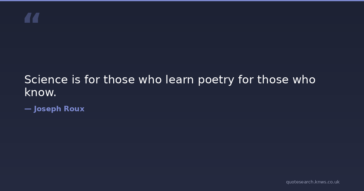 Science is for those who learn poetry for those who know. poets poetry Download Image Share on X Share on Facebook Copy Link
