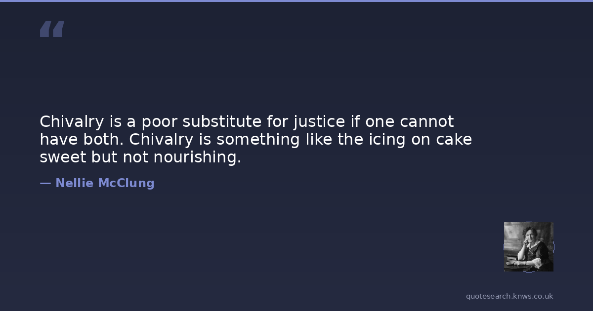 Chivalry is a poor substitute for justice if one cannot have both. Chivalry is something like the icing on cake sweet but not nourishing.