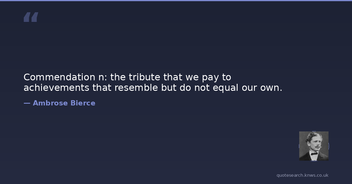 Commendation n: the tribute that we pay to achievements that resemble but do not equal our own.