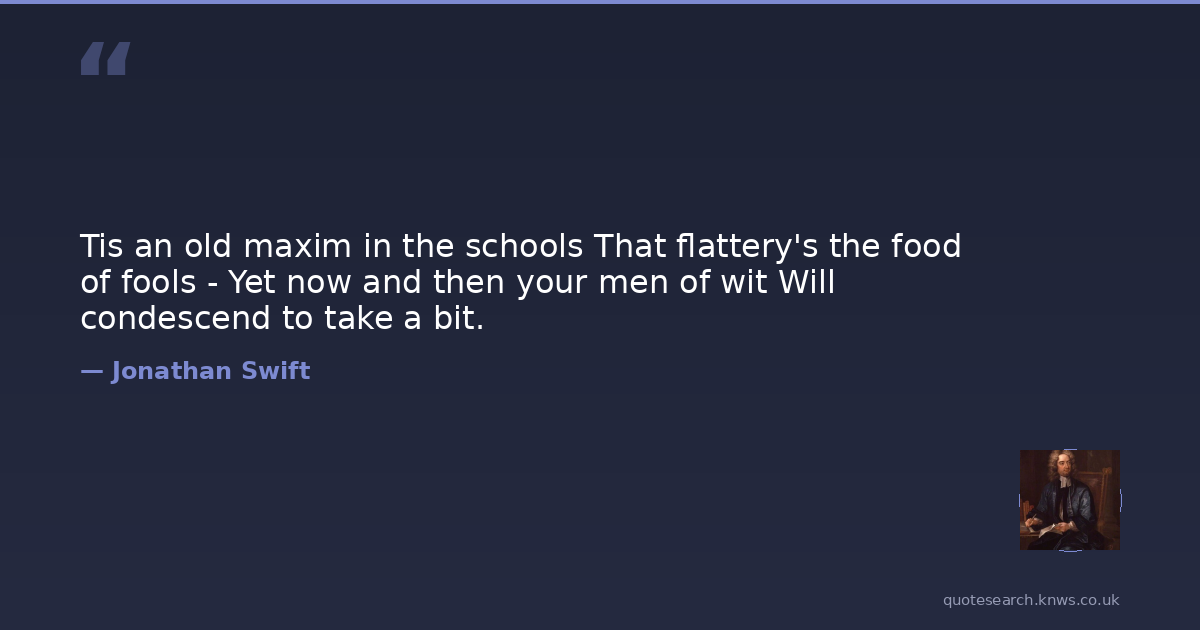 Tis an old maxim in the schools That flattery's the food of fools - Yet now and then your men of wit Will condescend to take a bit.