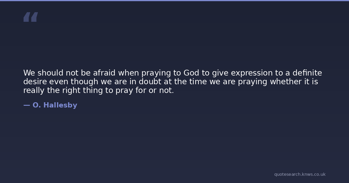 We should not be afraid when praying to God to give expression to a definite desire even though we are in doubt at the time we are praying whether it is really the right thing to pray for or not.
