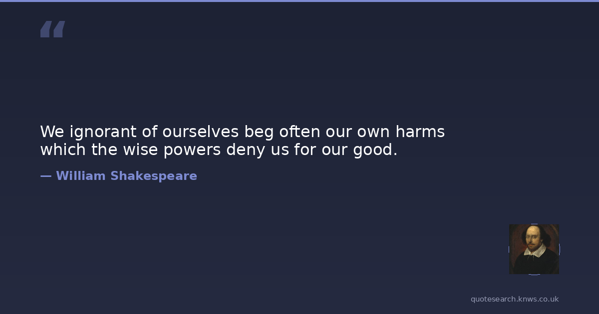 We ignorant of ourselves beg often our own harms which the wise powers deny us for our good.