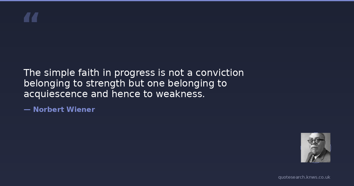 The simple faith in progress is not a conviction belonging to strength but one belonging to acquiescence and hence to weakness.