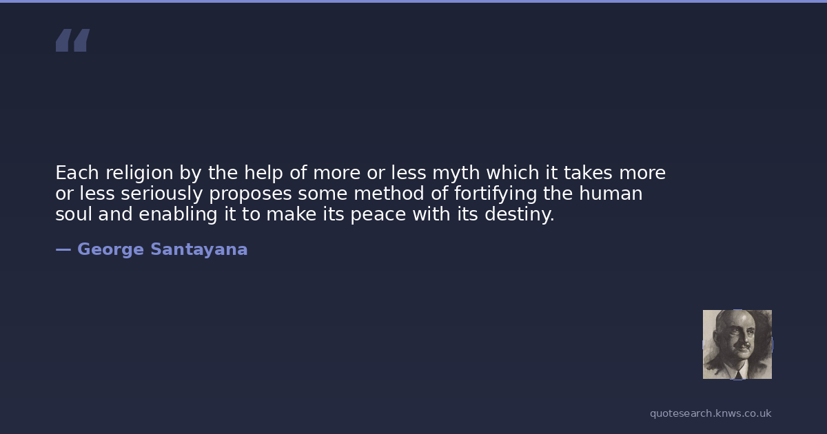 Each religion by the help of more or less myth which it takes more or less seriously proposes some method of fortifying the human soul and enabling it to make its peace with its destiny.