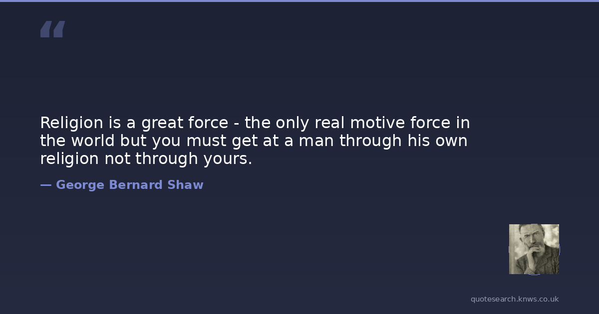 Religion is a great force - the only real motive force in the world but you must get at a man through his own religion not through yours.