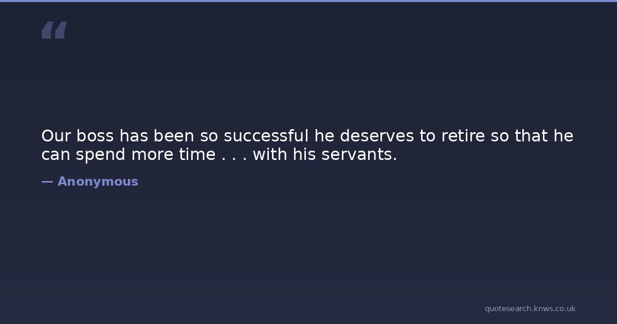 Our boss has been so successful he deserves to retire so that he can spend more time . . . with his servants.