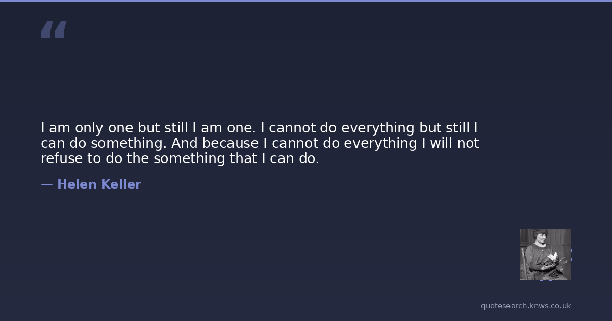 I am only one but still I am one. I cannot do everything but still I can do something. And because I cannot do everything I will not refuse to do the something that I can do.